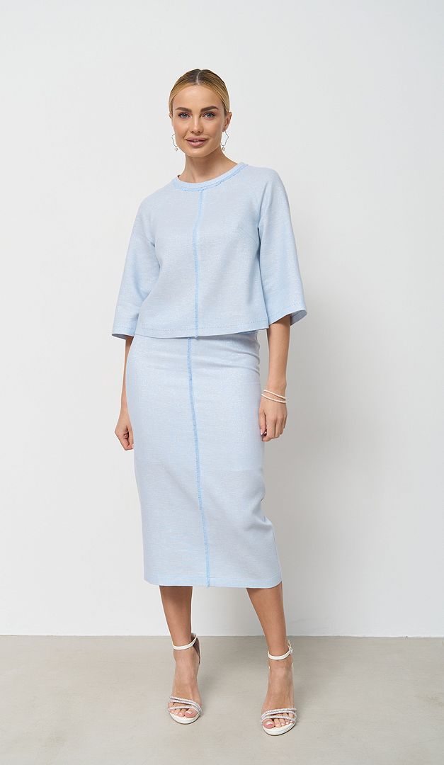 Рекомендуємо комбінувати з спідницею з бахромою блакитною (арт.2716) з аналогічної тканини.