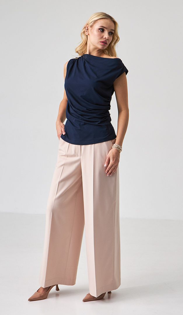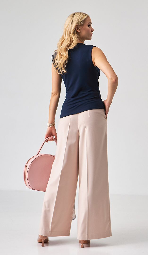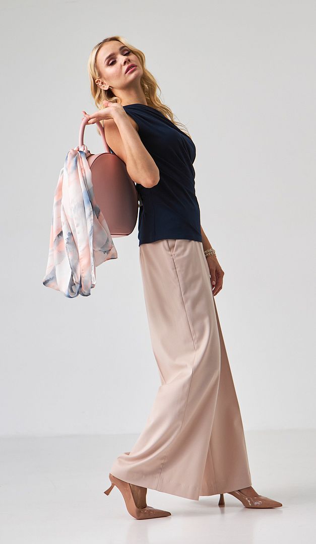 На фото створений лук з брюками палаццо пудровими з кишенями (арт.1870).