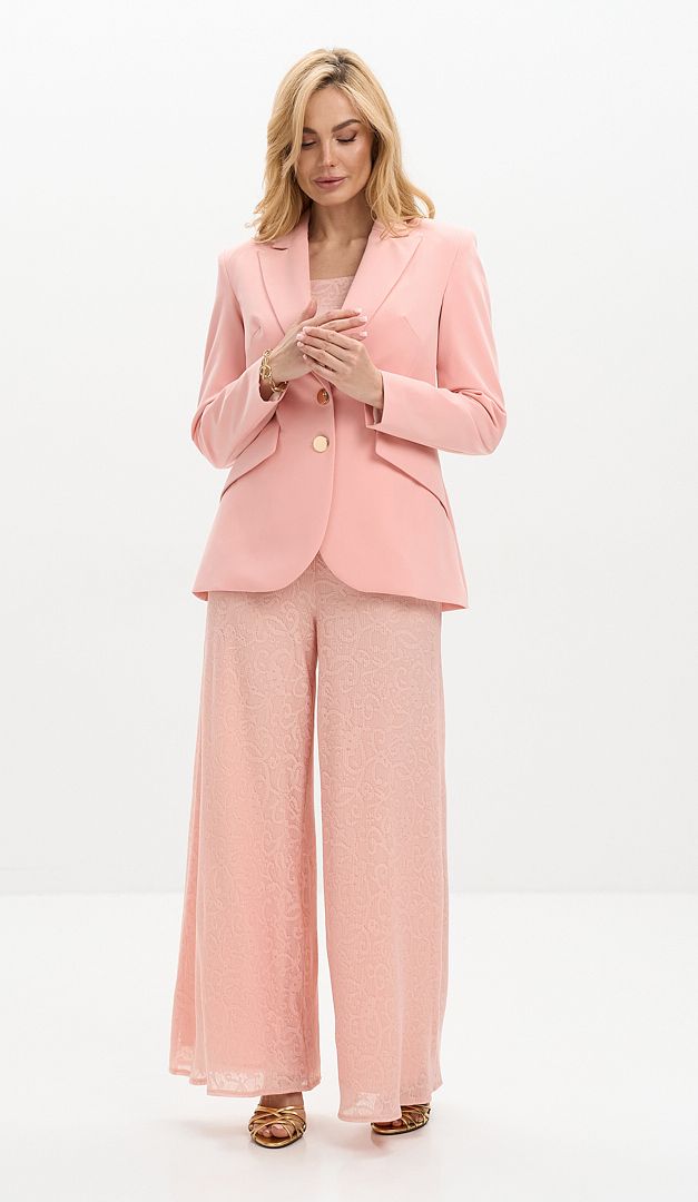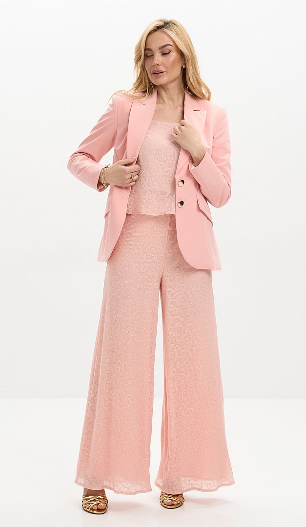 На фото створений лук з топом гофре рожевим (арт.2913) і жакетом класичним рожевим (арт.4051).