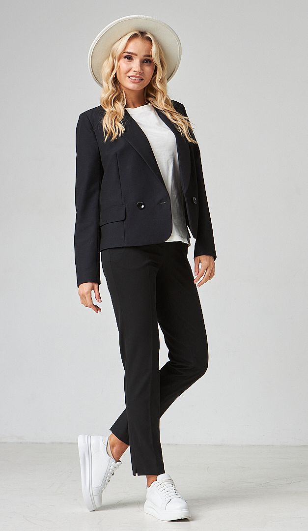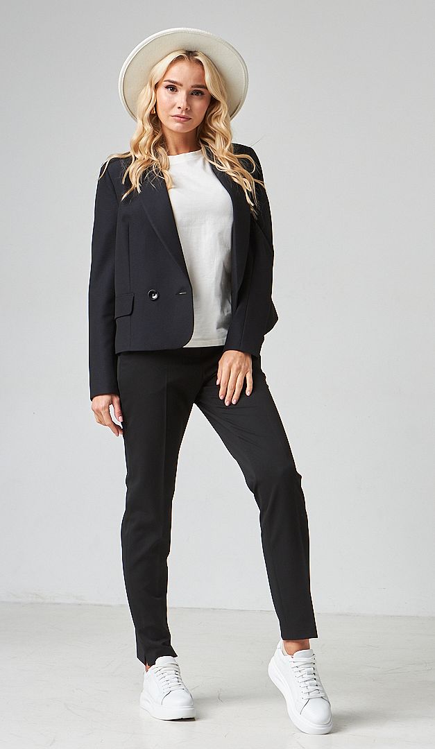 На фото створений лук з брюками і жакетом жіночим коротким чорним (арт.2279).