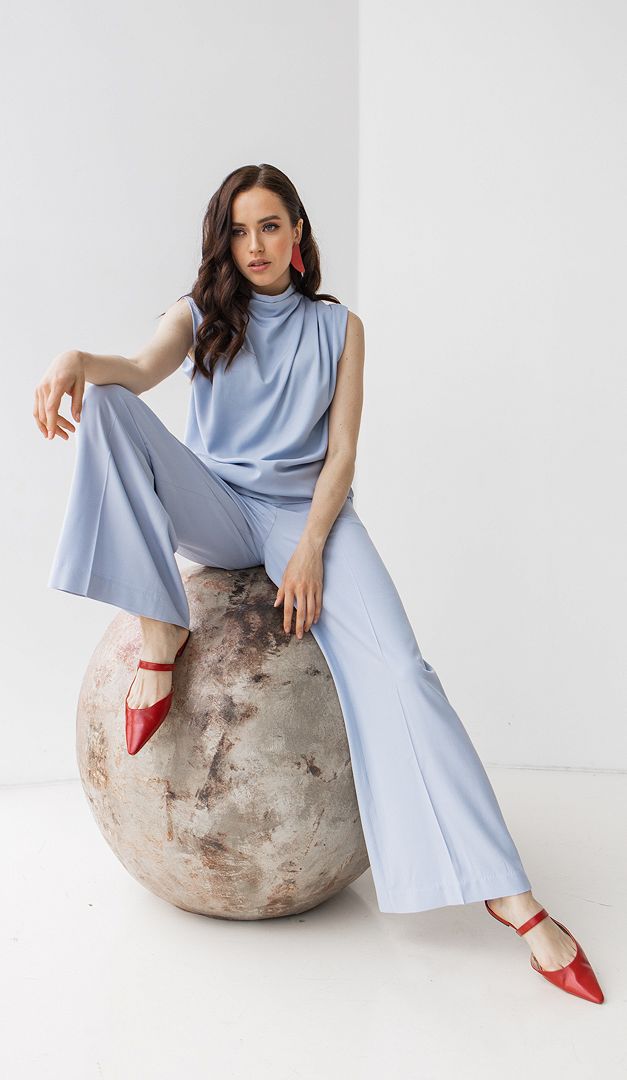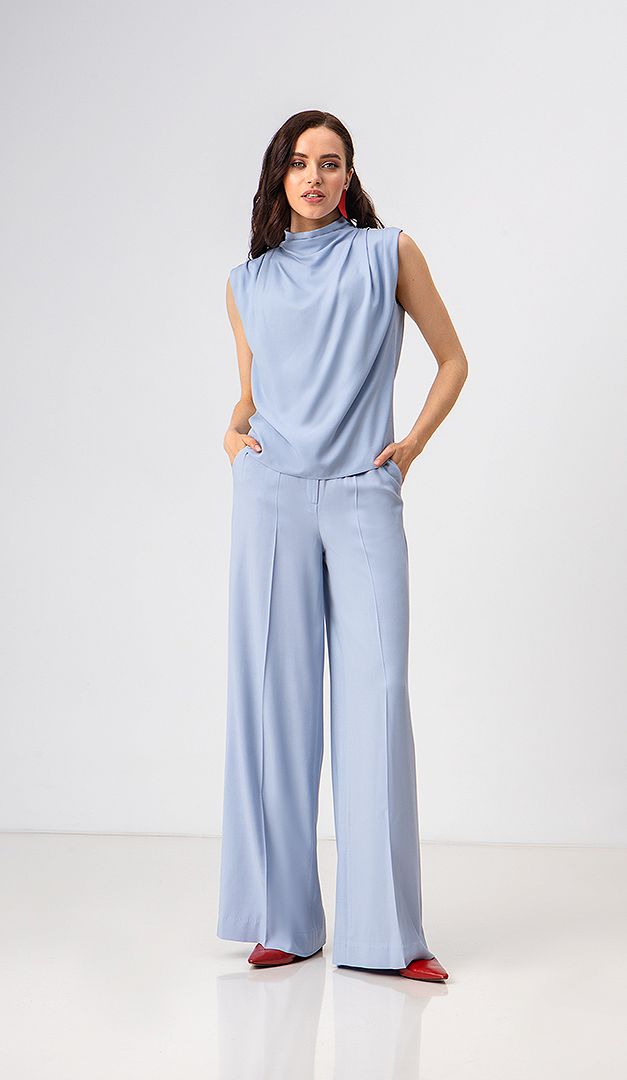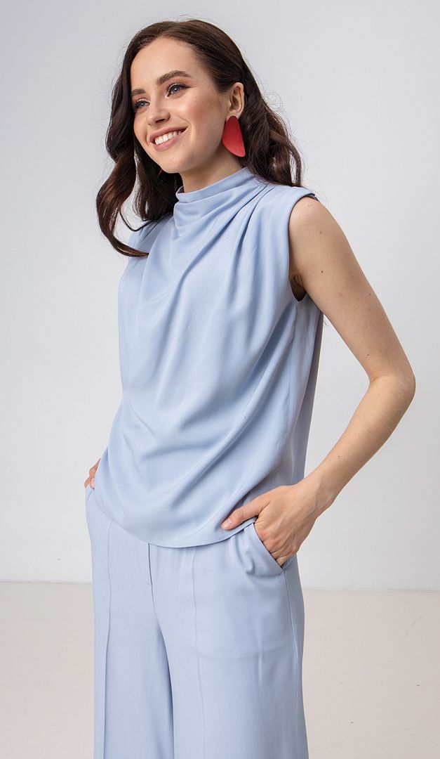 Для створення ефектного образу рекомендуємо комбінувати з блакитним топом з драпіровкою (арт.1736).