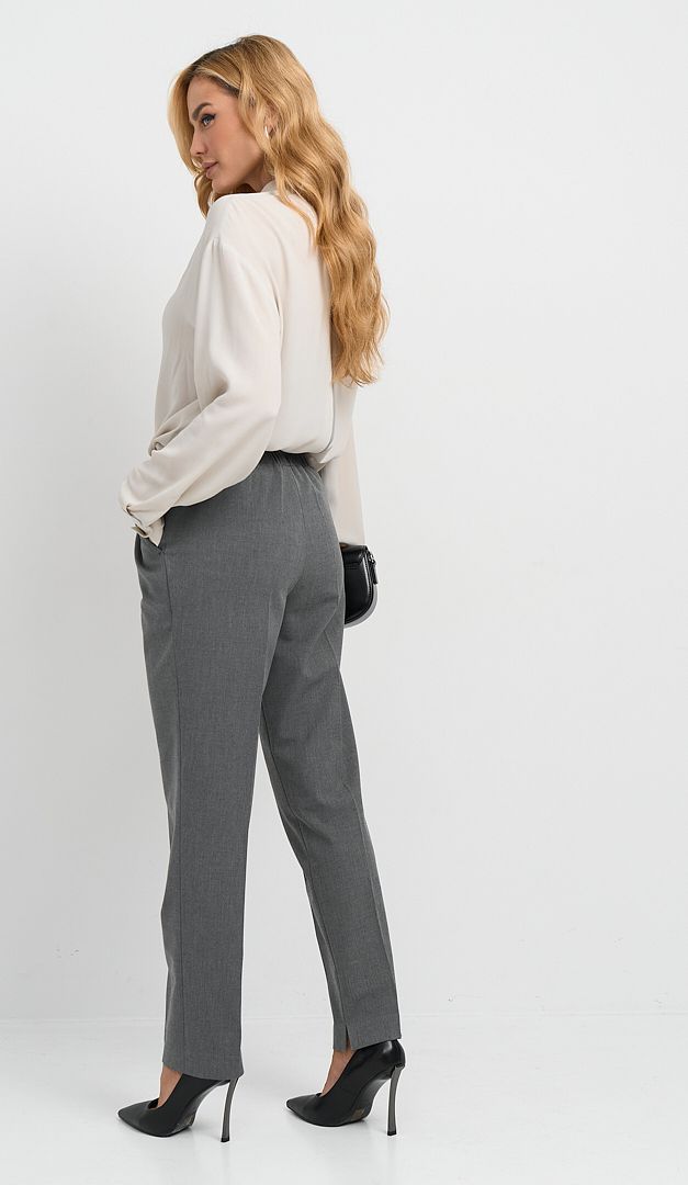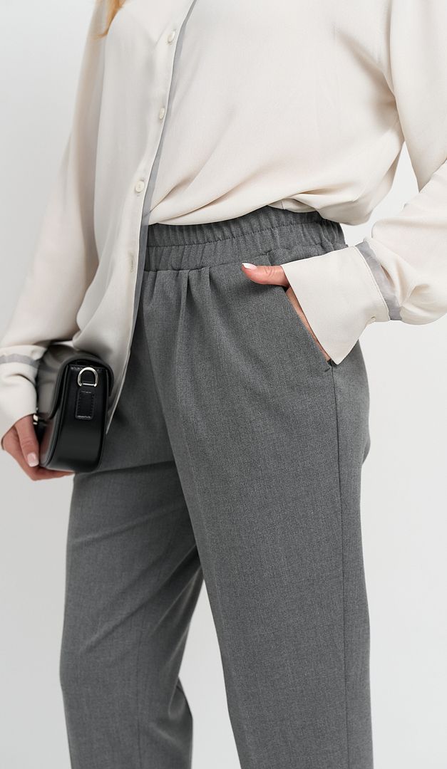 Стильні та практичні штани жіночі з вовни сірі стануть базовим елементом для створення повсякденних аутфітів у вашому гардеробі. Модель зверху оформлена широкою резинкою, що ідеально фіксує виріб на талії. Штани жіночі з вовни сірі мають середню посадку по фігурі та звужений до низу крій. З боків модель доповнена прорізними кишенями, а її низ по внутрішньому шву має невеликий розріз. Завдяки своїй універсальності штани жіночі з вовни сірі вдало підійдуть як для базового офісного дрес-коду, так і для луків у стилі casual. Без застібок і підкладки.