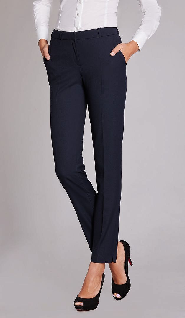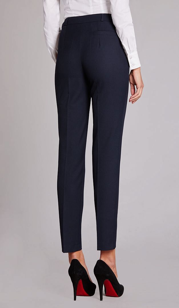 Брюки жіночі класичні сині з кишенями стануть ідеальною базою до будь-якого ділового образу! Модель напівприлеглого крою, з середньою посадкою по фігурі та пришивним поясом з застібкою на “блискавку”, гаплик і один потайний ґудзик. Брюки жіночі класичні сині з кишенями мають запрасовані стрілки, що додають жіночому силуету стрункості та зручні функціональні кишені для більшої практичності. Універсальний колір дозволить комбінувати виріб практично з будь-яким джемпером, блузкою чи гольфом. Модель без підкладки.