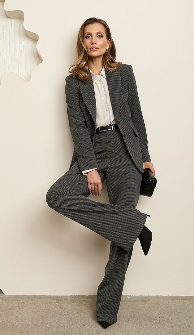 На фото створений лук з сорочкою базовою сірою (арт. 2731) і жакетом чорний меланж (арт.4033).