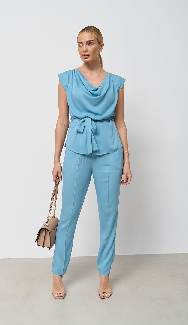 Для створення стильного завершеного образу рекомендуємо комбінувати з блузкою з драпіровкою бірюзовою (арт.1865).