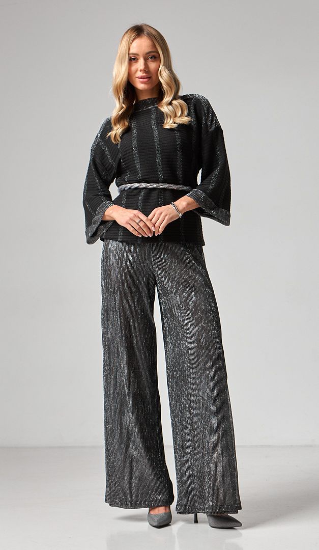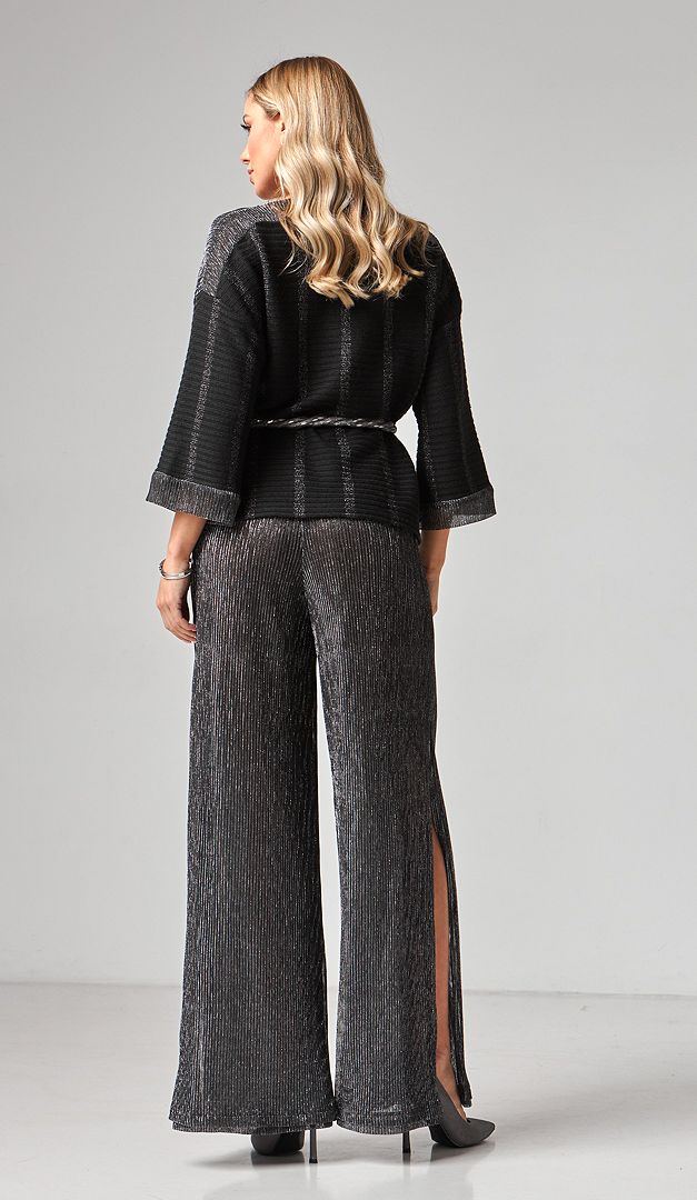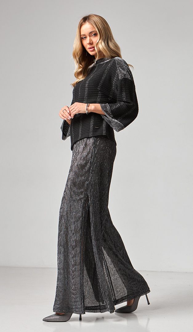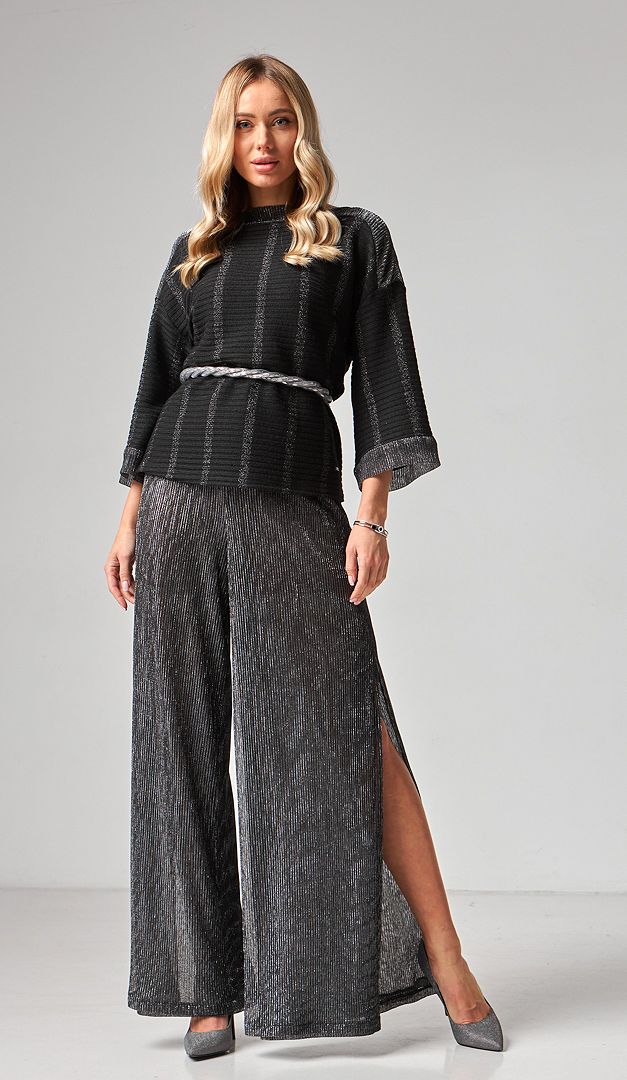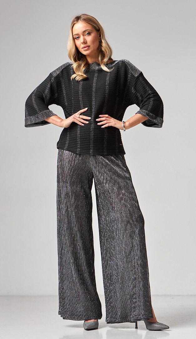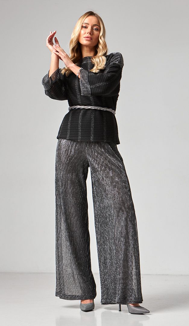 Для гармонійного образу комбінуйте штани з блузоном жіночим чорним з сріблом (арт.2169).