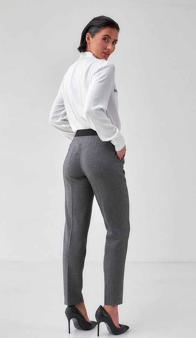Оригінальні класичні штани жіночі чорно-сірий меланж, які зроблять будь-який діловий і офісний образ більш ефектним! Модель виконана з тканини середньої щільності з тонкою люрексною ниткою. Штани жіночі чорно-сірий меланж мають злегка звужений до низу, напіввільний крій, верх оформлений нешироким поясом із застібкою на «блискавку», один ґудзик і гаплик, а також практичними функціональними кишенями. Висота посадки — середня. Штани жіночі чорно-сірий меланж доповнені акуратними запрасованими стрілками і невеликими розпірками по внутрішньому шву для зручності.