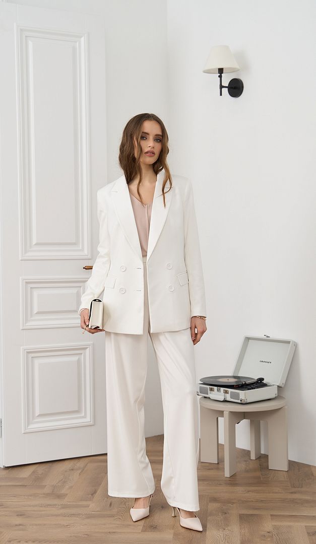 Для стильного монохромного образу рекомендуємо комбінувати штани з жакетом жіночим молочним (арт.1837).