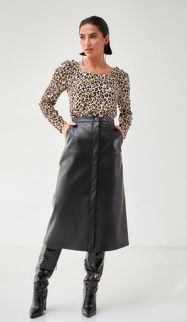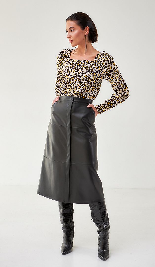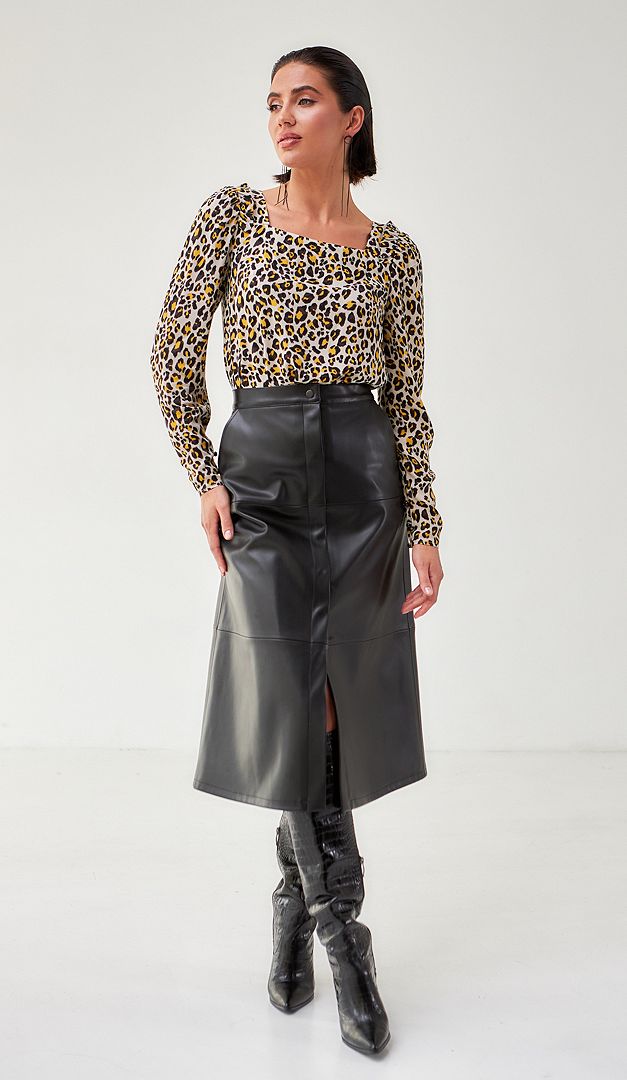 На фото створено образ з блузкою леопардовий принт (арт.1789).