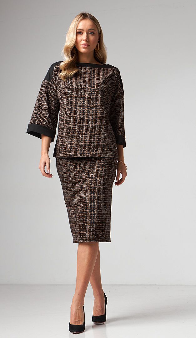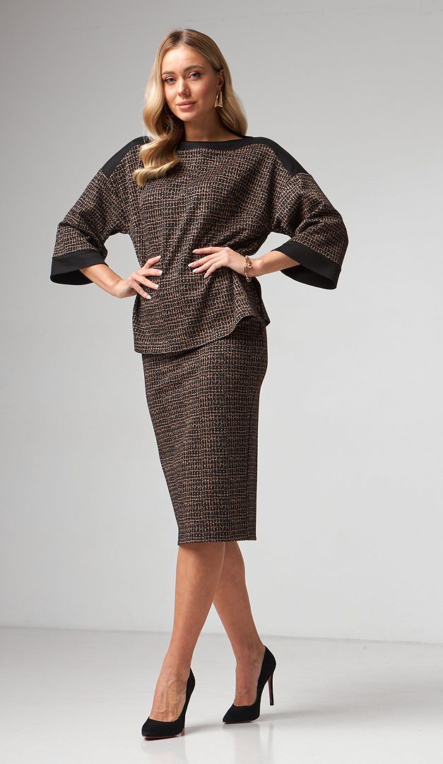 Рекомендуємо комбінувати спідницю з блузоном жіночим бронзовий принт (арт.2167).