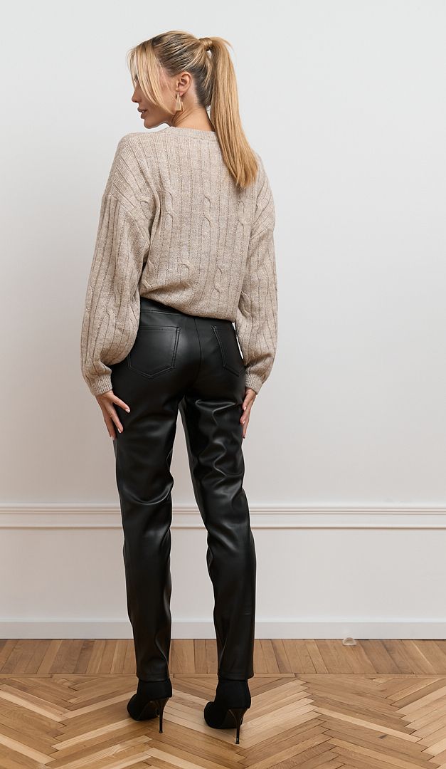 На фото створений образ з штанами з екошкіри завуженими (арт.2429).