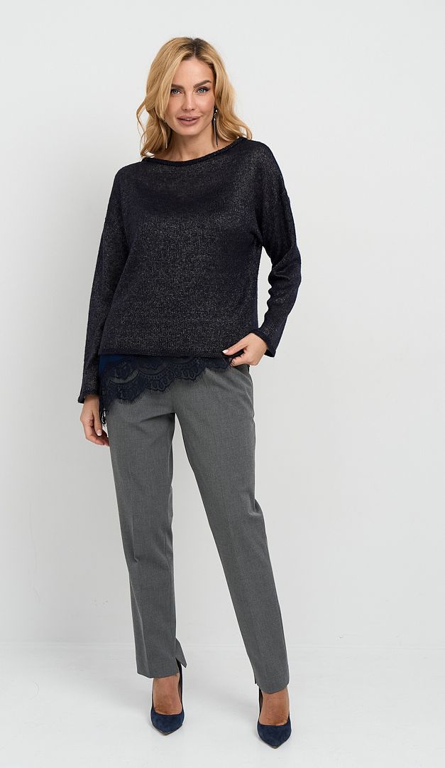 На фото створений образ з топом з мереживом (арт.4036) і штанами сірими (арт.2897).