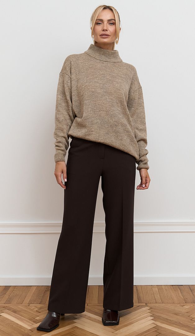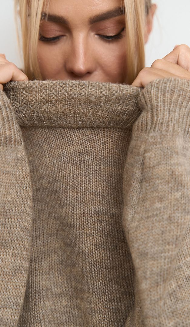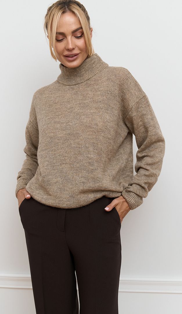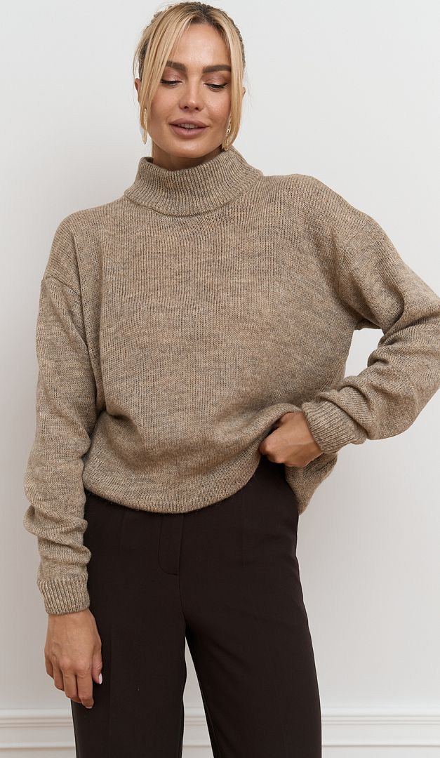 Джемпер жіночий трикотажний базовий світло-коричневий ідеальне рішення для стильних затишних образів. Модель вільного крою, зі зручним коміром-стійкою та довгим рукавом з манжетою. Джемпер жіночий трикотажний базовий світло-коричневий виконаний з тонкої меланжевої пряжі у склад якої входить вовна та мохер. Маючи гладке переплетення середньої щільності у трендовому монохромному кольорі виріб буде вдало виглядати, як в луках у стилі casual, так і в офісних аутфітах.