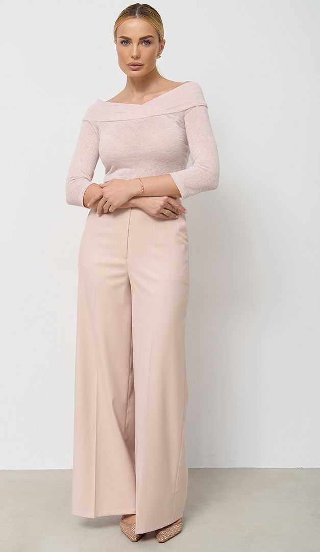 На фото створений образ з брюками палаццо пудровими з кишенями (арт.1870).