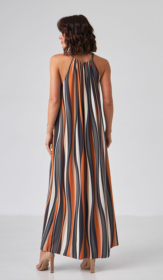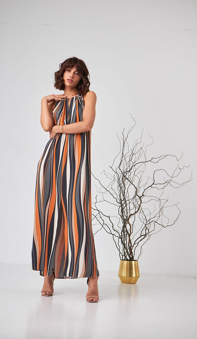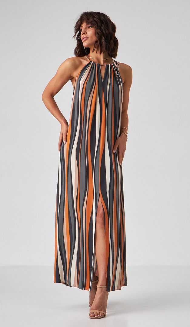 Сарафан жіночий літній в смужку — вдале рішення для стильних літніх образів. Модель прямого вільного крою oversize, з трендовою довжиною максі і горловиною, яка оформлена практичною регульованою шнурівкою із аналогічної тканини. Сарафан жіночий літній в смужку виконаний із 100% віскозної тканини, в якій Ви почуватимете себе комфортно навіть у самий спекотний день. Завдяки оригінальному принту у “вертикальну смужку” силует виглядає більш витончено, а контрастне кольорове рішення додає йому ефектності. Стильна деталь — висока розпірка по низу центрального шва попереду. Модель без підкладки.