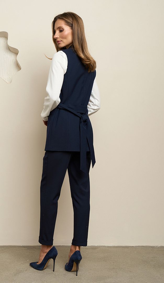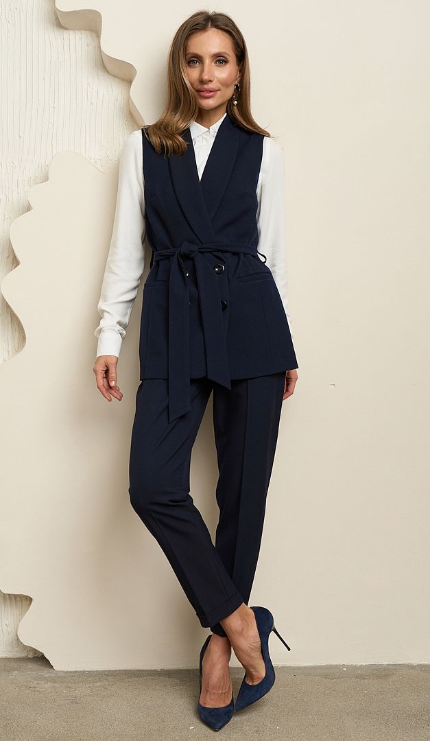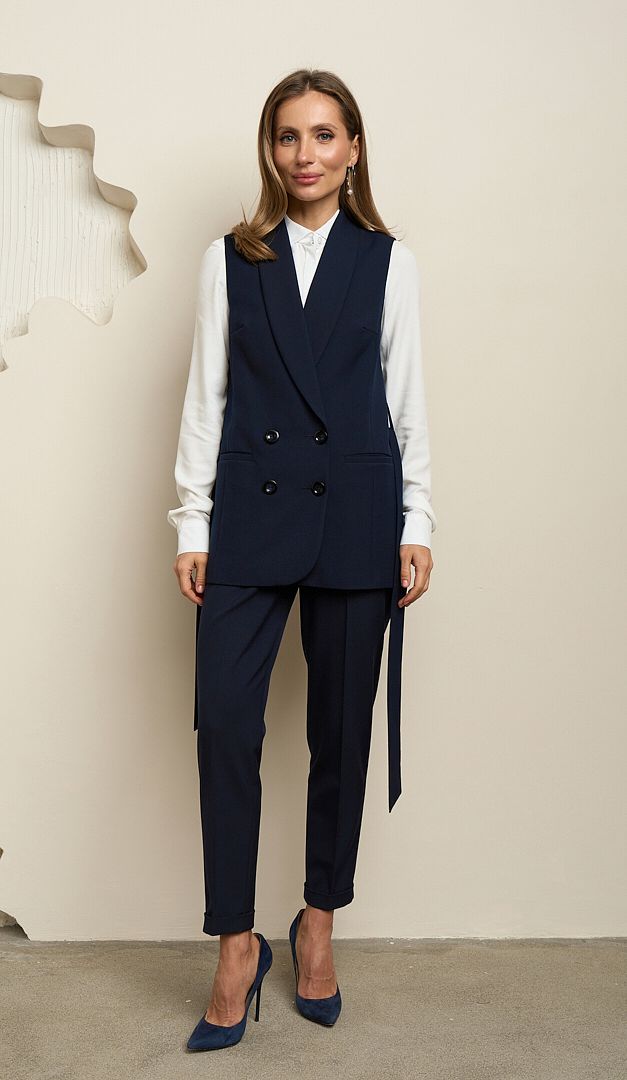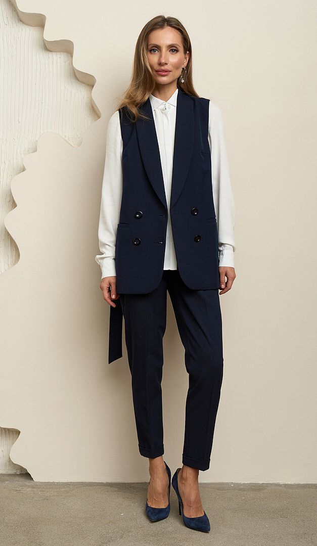 На фото створений образ з штанами завуженими синіми (арт.2649) і блузкою Кліко (арт.1517).