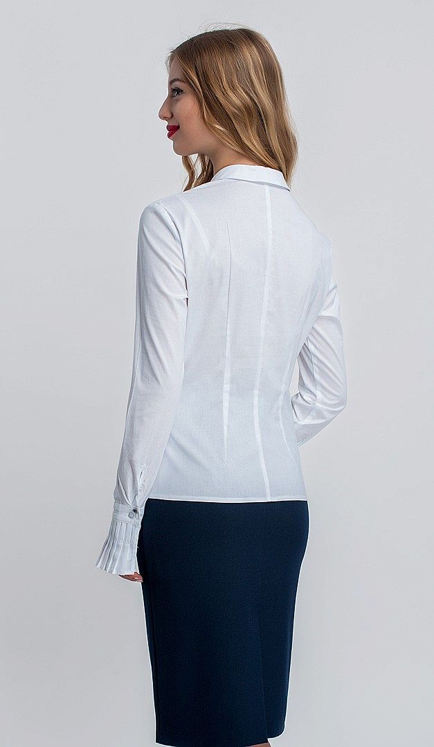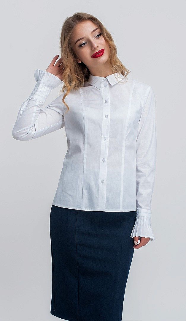 Базова блуза Мануела гармонійно впишеться в будь-який стиль. Ця модель має лаконічний і простий фасон з прямими рельєфами, тому кожна леді в блузі Мануела буде неодмінно виглядати витонченою. Виріз горловини красиво прикрашає класичний акуратний комір на стійці. А завдяки шикарним гофрованим манжетам блузу впевнено можна надягати не тільки в повсякденному житті, але і для вечірніх і ділових нарядів.