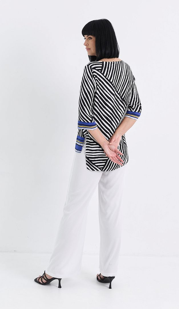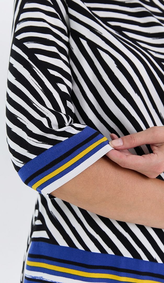 Маючи блузка пряму чорно-білий принт в своєму гардеробі, Ви відразу без особливих зусиль створите яскравий і вишуканий look. Блузка пряма чорно-білий принт ідеальна для повсякденного дрес-коду, так як матеріал з 100% віскози і вільний прямий крій гарантують комфорт протягом усього дня. Ця модель стильно і незвично виглядає завдяки вкороченому переду і акуратним бічним розпіркам.