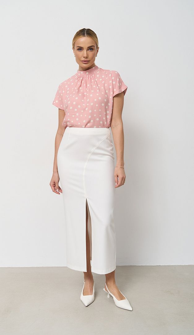На фото створений образ зі спідницею міді молочною (арт.2637).