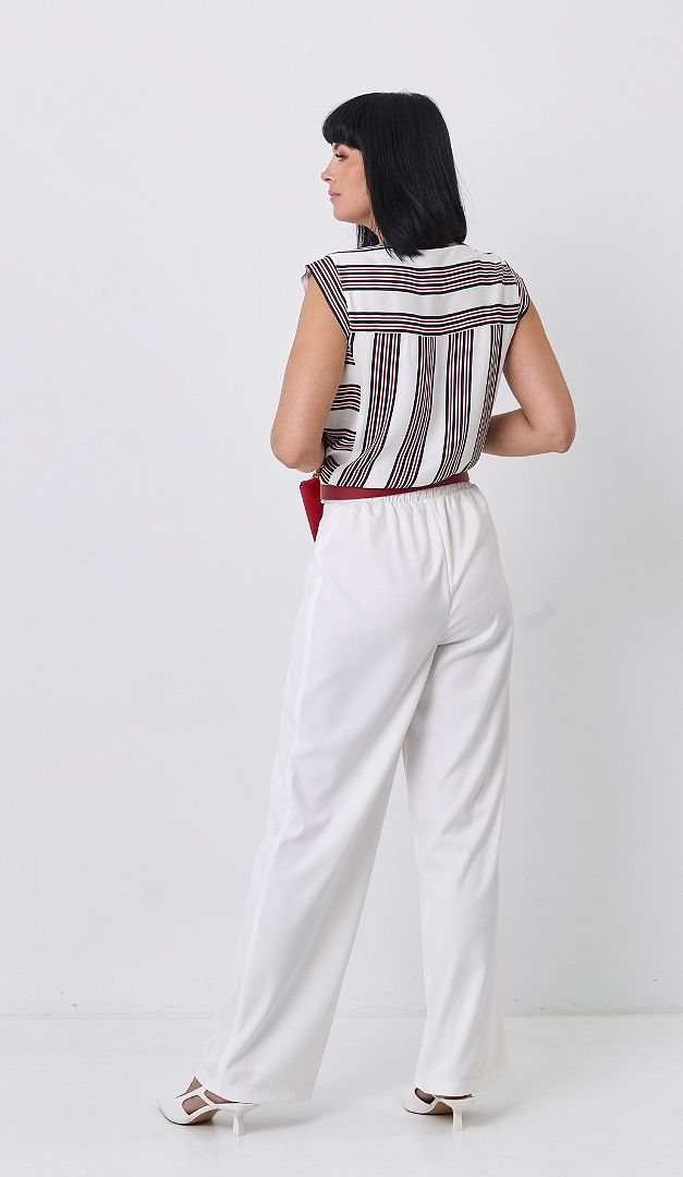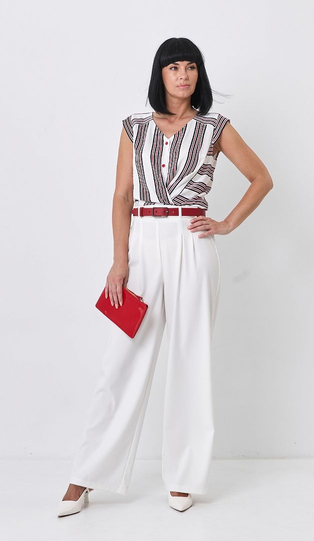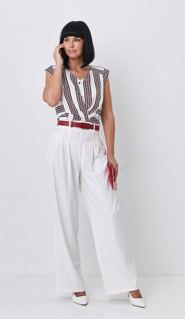 На фото створений образ з штанами прямими молочними (арт.2639).