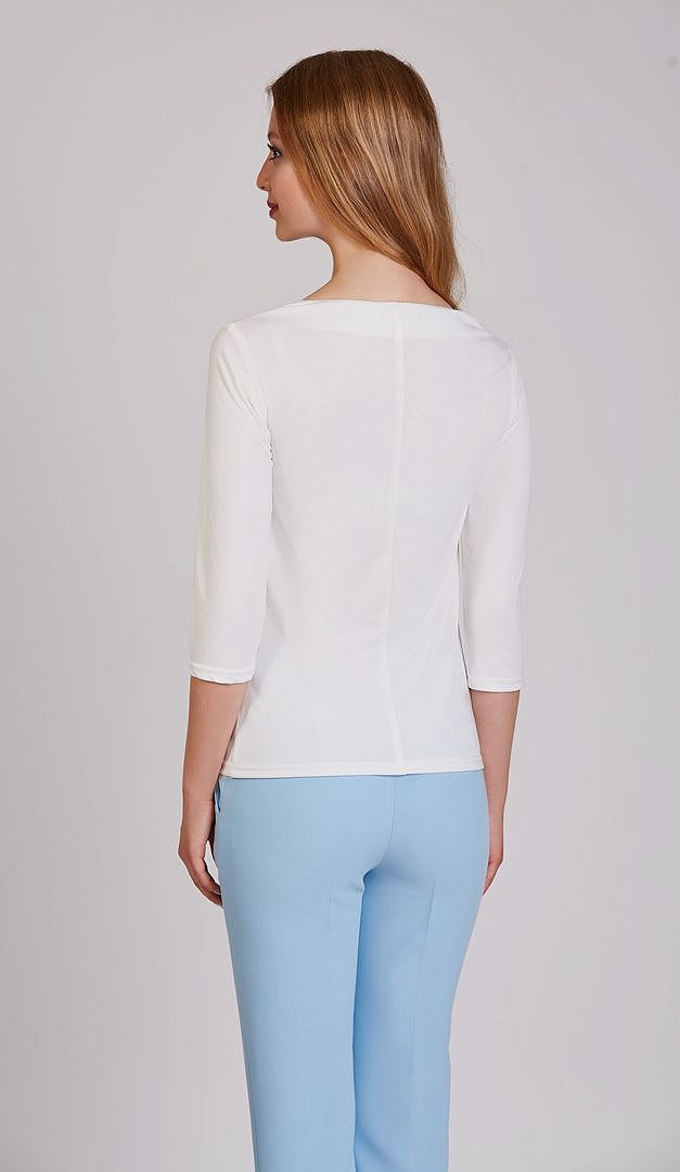Кофта Нора завдяки лаконічному дизайну відмінно "подружиться" з будь-якою річчю з Вашого гардеробу! Ця модель гармонійно доповнить і діловий костюм, і зручні повсякденні брюки або спідницю. Прилеглий фасон, кокетливо укорочений рукав, поглиблений виріз горловини - ці деталі не тільки подарують Вам комфорт при використанні, а й граційно підкреслять лінії фігури.