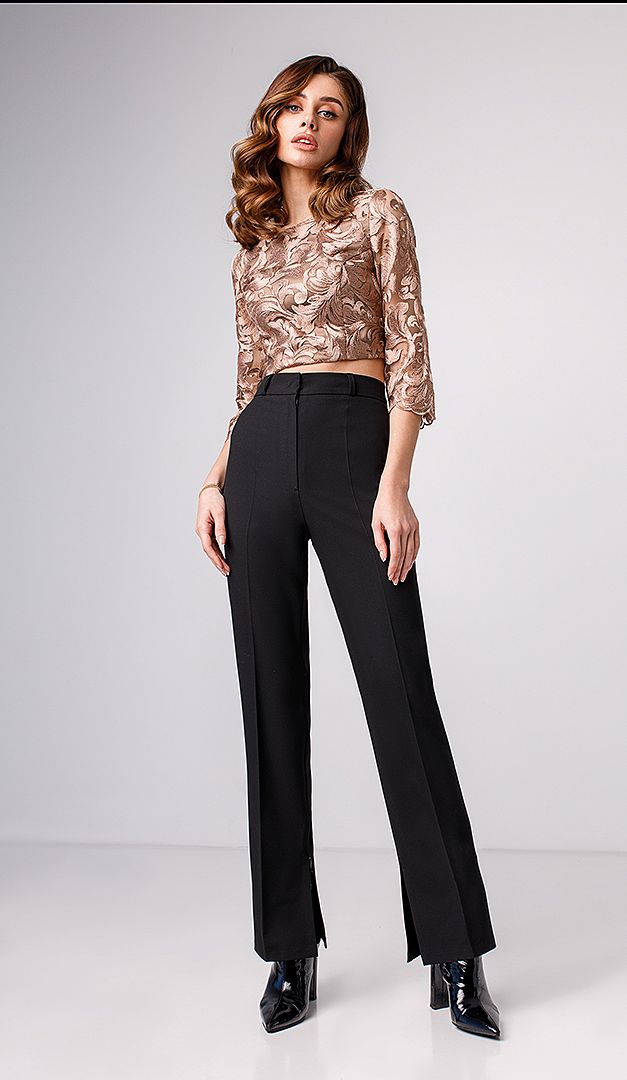 Неймовірно вишуканий та стильний кроп топ з довгим рукавом, безперечно, стане ефектною родзинкою до будь-якого вашого образу. Модель має двошарову структуру, що поєднує в собі атлас та надзвичайно красиве мереживо. Неглибокий округлий виріз горловини ззаду доповнений практичною застібкою на дві кнопки. Кроп топ по низу оформлений м'якою еластичною резинкою, що сприяє комфортному приляганню по жіночій фігурі. Особливу увагу привертає спокусливий виріз на спині, який додатково підкреслить жіночність створеного аутфіту. Кроп топ з довгим рукавом ззаду також застібається на потайну застібку-”блискаву”.