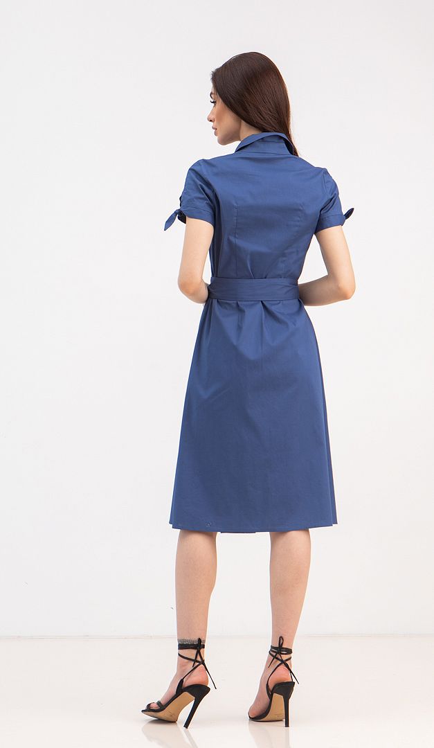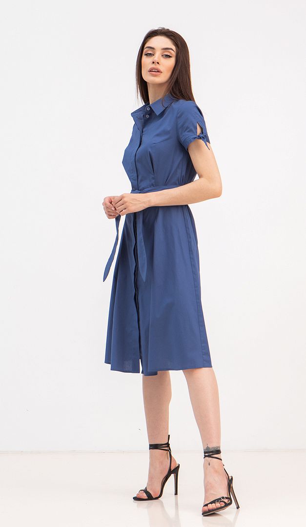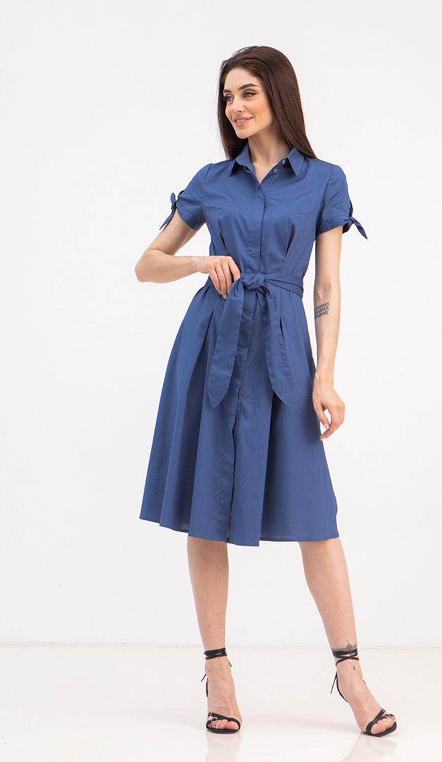 Плаття Амореті поєднує в собі все те, що так потрібно сучасним дівчатам — комфорт, практичність і елегантність! Плаття Амореті ідеальне для роботи і для прогулянок навіть в самий жаркий день, так як виготовлене з 95% бавовни! Злегка подовжений і розкльошений від лінії талії фасон цього плаття здатний створити гарний пропорційний силует, не залежно від розміру фігури. Виріз горловини оформлений акуратним відкладним коміром на стійці. Рукава доповнені кокетливими зав'язками і невеликими вирізами. Плаття Амореті має зручну функціональну застібку на ґудзики. Завершальний штрих — це підкреслюючий талію пояс, зафіксований в бічному шві, який можна зав'язувати як спереду, так і по спинці. Без підкладки.