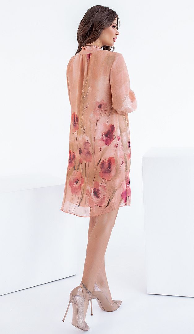 Якщо Вам потрібно ошатне і практичне плаття, рекомендуємо плаття Саваж в ніжний зачаровуючий принт. Плаття має дуже зручний і комфортний фасон, який підходить абсолютно всім. Горловина мило прикрашена коміром-стійкою з акуратною рюшею, що зав'язуэться на шнурівку. Кокетливо укорочений рукав оформлений манжетою. Плаття на легкій підкладці.