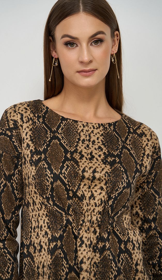 Одна з найбільш ідеальних суконь для сучасних модниць — сукня трикотажна в анімалістичний принт ! Вона комфортна і практична, завдяки чому істотно заощадить Ваш час на будь-які збори. Вільний розширений до низу крій ідеальний для всіх типів фігури. Сукня трикотажна в анімалістичний принт має округлий виріз горловини, довгий рукав зі злегка приспущеною лінією плеча та коротку еластичну резинку по переду, завдяки якій жіночий силует стає більш витонченим. Модель без застібок і підкладки.