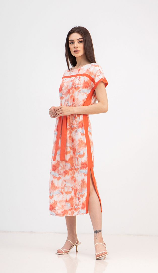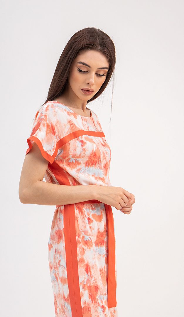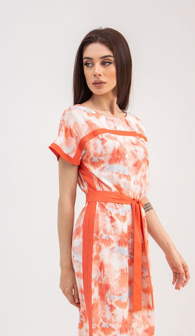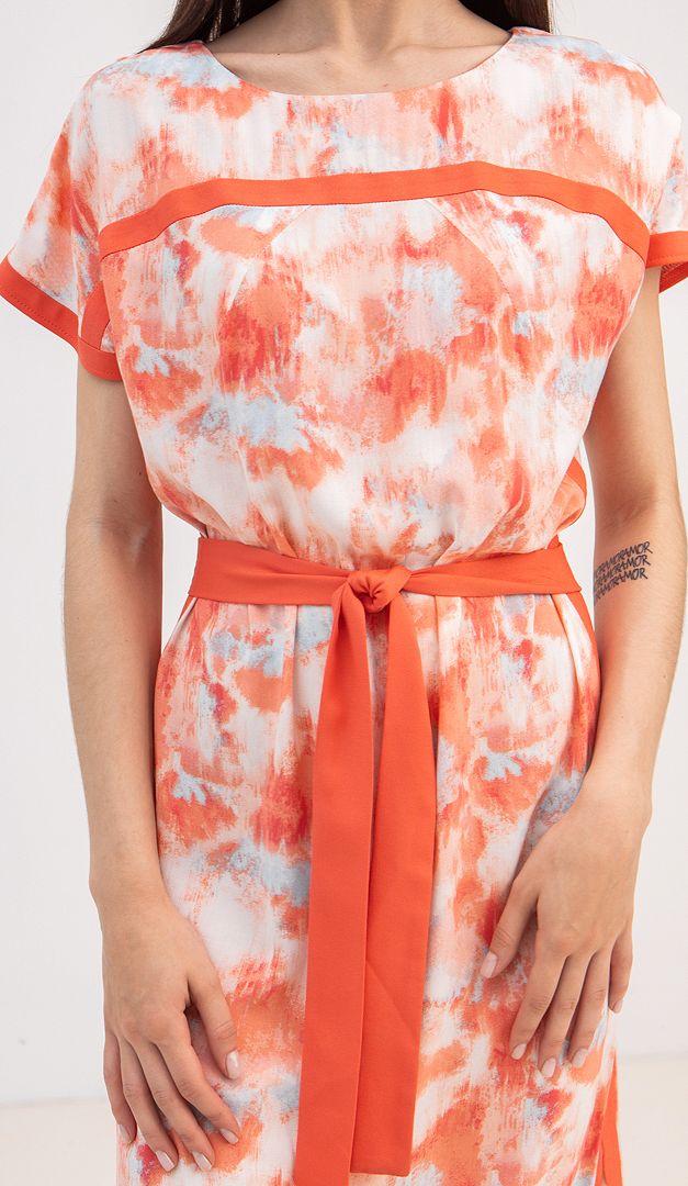 Сарафан Медісон створений спеціально для Вашого літнього дозвілля! Він має прямий вільний крій, який абсолютно не обмежує рухів. Пошитий з легкої віскозної тканини. Соковитий абстрактний принт гармонійно доповнений контрастними планками, які надають силуету додаткової стрункості. Лінія талії в сарафані Медісон стильно підкреслена настроченим поясом. Ще одна кокетлива деталь сарафана Медісон — це невеликі бічні розпірки. Без застібок.