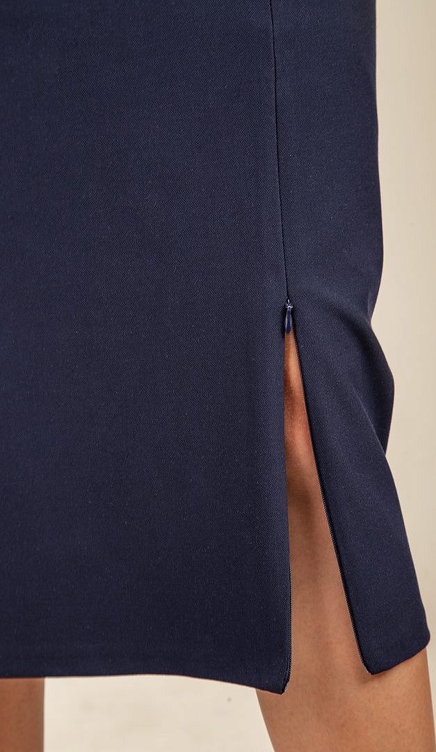 Класична спідниця-олівець, яка зробить Ваш діловий образ елегантним і інтригуючим! Стильна довжина «міді», прилеглий крій — все це допоможе Вам візуально сформувати красивий стрункий силует. Спідниця має середню посадку по талії. Верх оформлений широким настрочени поясом. Додати жіночних ноток базовій спідниці Люсія ми вирішили за допомогою кокетливої бічнії розпірки, довжину якої можна регулювати за допомогою функціональної «блискавки». В середньому шві задньої частини зверху розташована застібка, а знизу — шліца для комфортної ходьби. Виріб на підкладці.