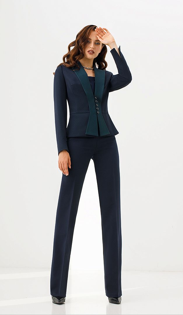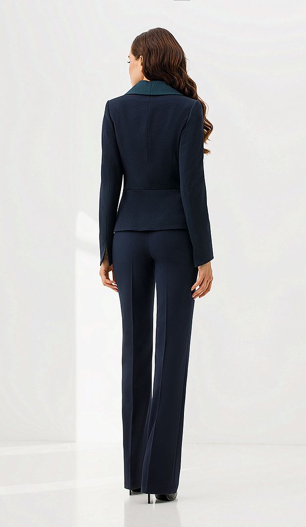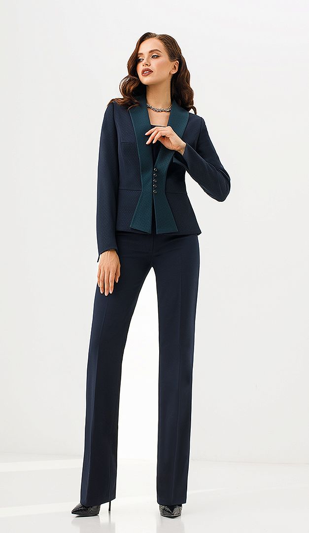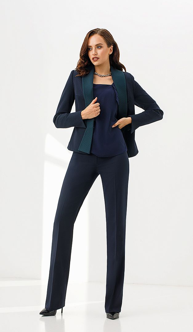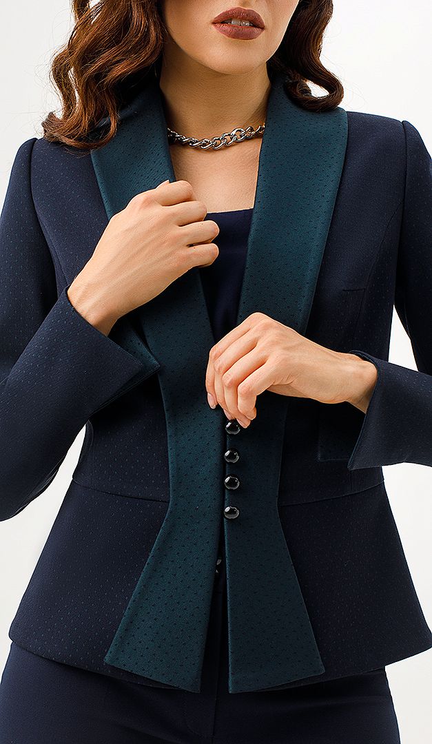 Жакет Іларія — це співвідношення елегантного фасону, ефектного крою і благородного забарвлення. Основна перевага цього жакету — це те, що завдяки прилеглому силуету зі злегка розкльошеним низом від відрізної лінії талії — з легкістю можна сформувати граційний силует при будь-якому типі фігури. А головна родзинка жакету — це оригінальне поєднання двох гармонійних кольорів тканини. Особливо вишуканою цю модель робить шалевий комір, що переходить в борти, які застібаються на чарівні ґудзики. Довгий рукав можна підвертати, формуючи стильний манжет, зсередини оформлений тканиною в тон коміра. Жакет на атласній підкладці.