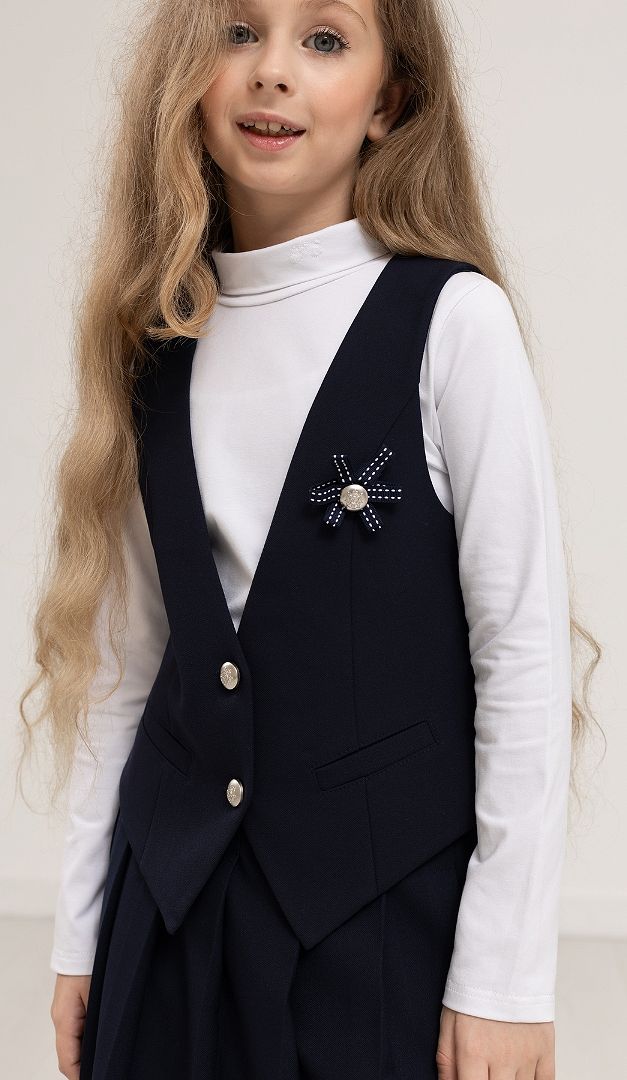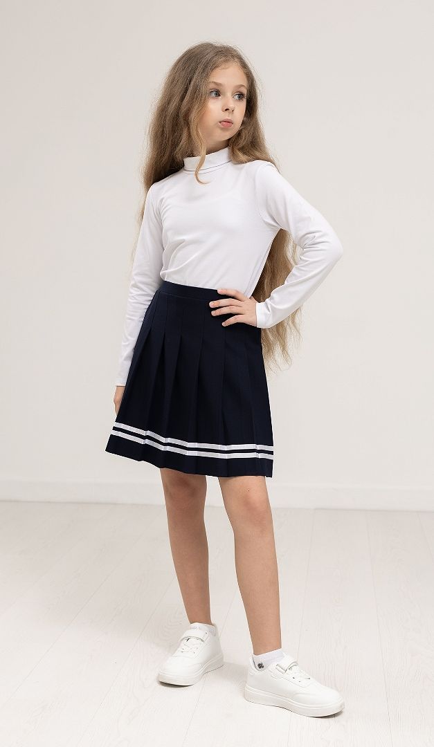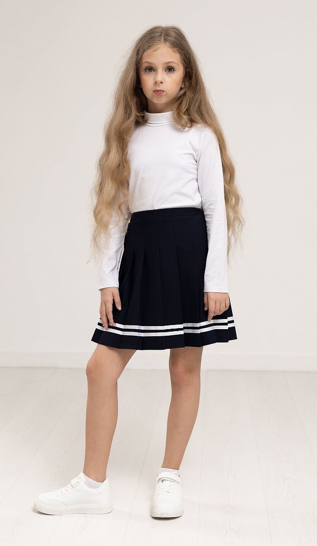 Класичний гольф для дівчинки буде відмінно комбінуватися з будь-якими елементами шкільного гардеробу. Горловина класичного гольфу оформлена акуратним коміром-стійкою. Гольф для дівчинки має прямий прилеглий крій і довгий прямий рукав.