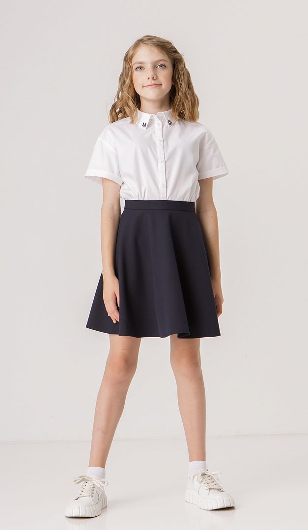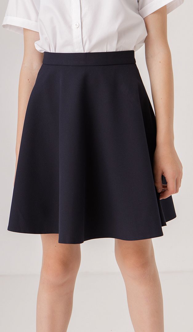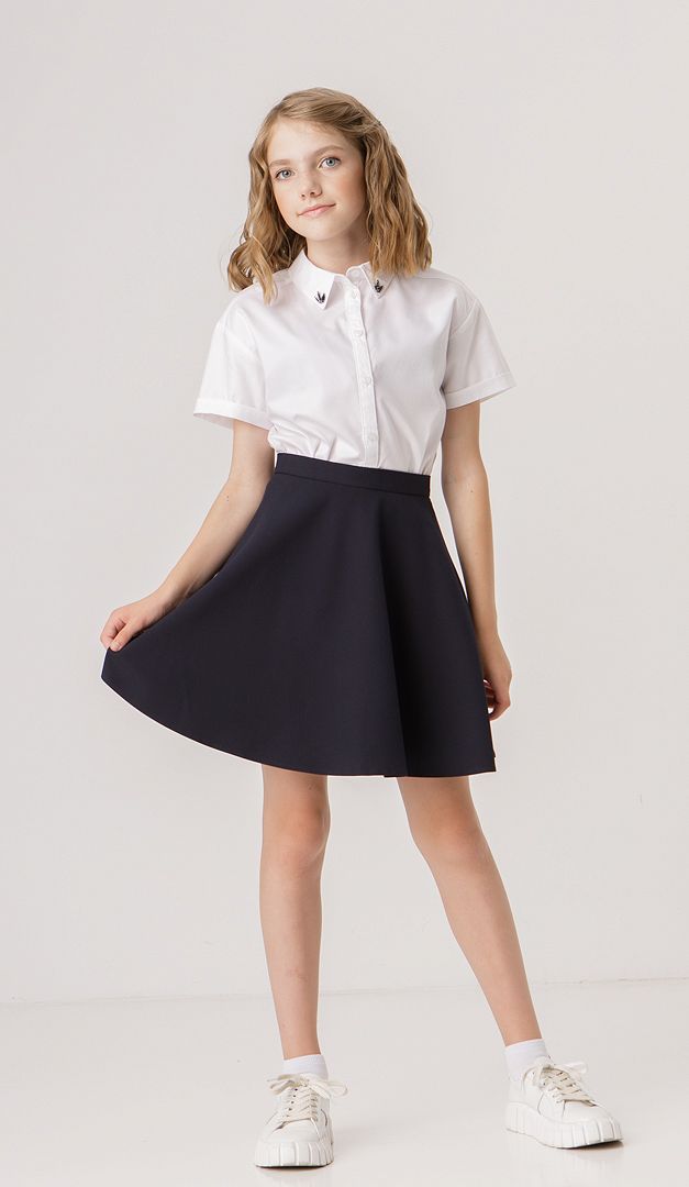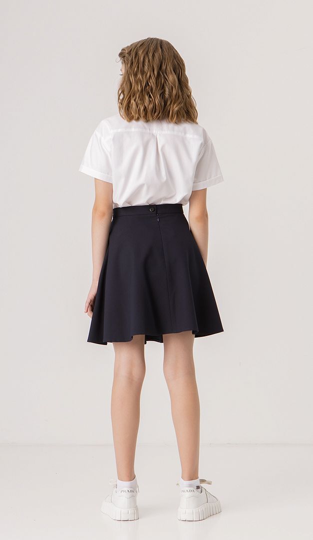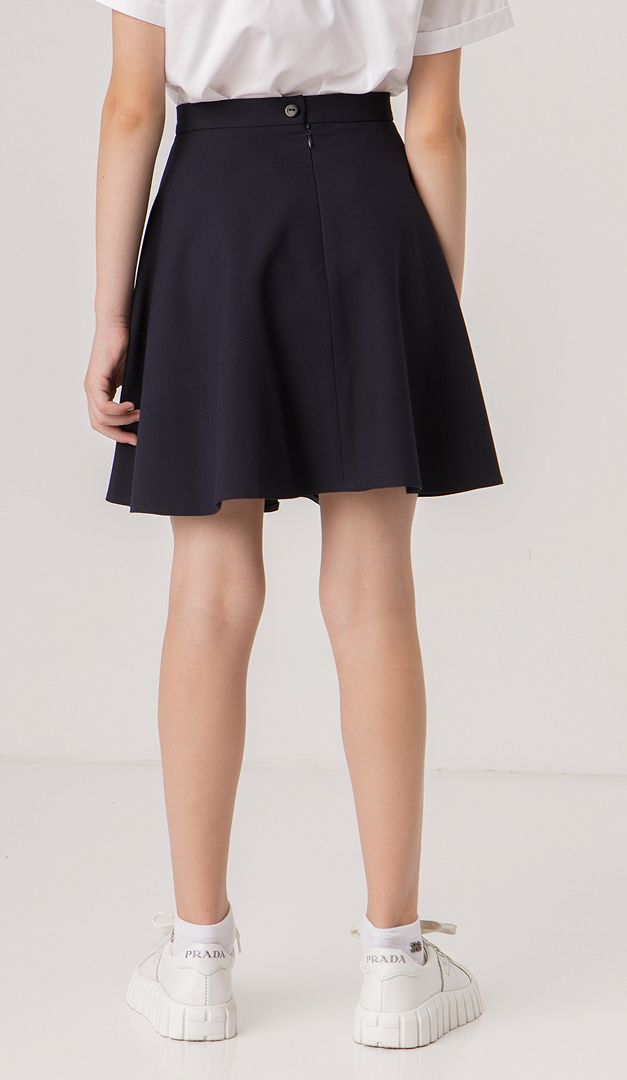 Кокетлива кльошна спідниця створена спеціально для юних модниць! Вона має середню посадку на тонкому настроченому паску із застібкою на ґудзик і "блискавку", які розташовані ззаду. Особливої нарядності моделі надає кльошний фасон, який гармонійно буде виглядати з будь-якими класичними блузами і жакетами. Спідниця на підкладці.