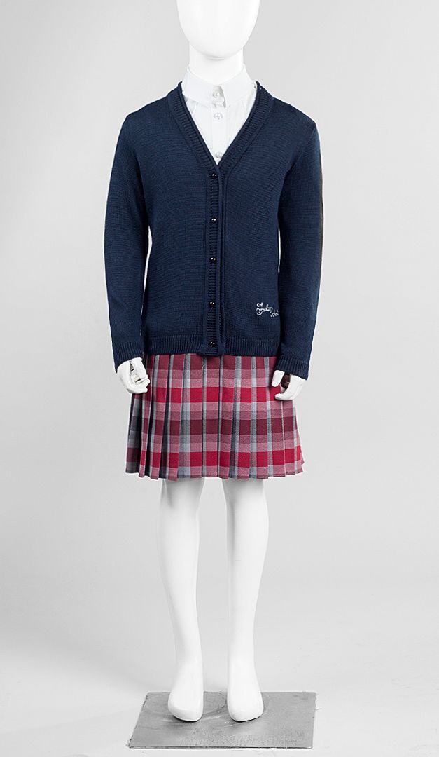 Універсальна і дуже практична трикотажна кофта для дівчинки синя. Відмінний варіант для модниць шкільного віку. Модель виконана з V-подібним вирізом горловини, що плавно переходить в планку-застібку на ґудзики і довгим рукавом. Низ трикотажної кофти і неширокі манжети рукавів оформлені м'якими планками-резинками. Класичний мінімалістичний дизайн кофти дозволяє легко комбінувати її з іншими речами. Це ідеальний варіант для доповнення, як шкільного так і повсякденного гардеробу Вашої дитини. Для більшої практичності, зсередини кофти вставлена спеціальна атласна стрічка, на якій можна вказати номер школи, клас та ініціали дитини.