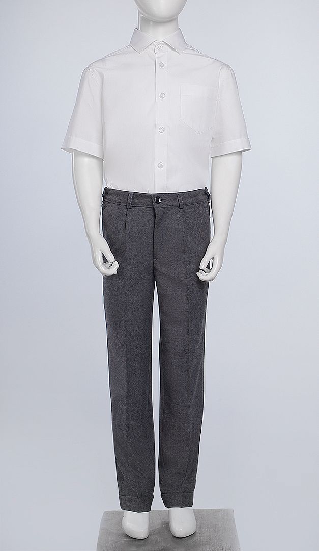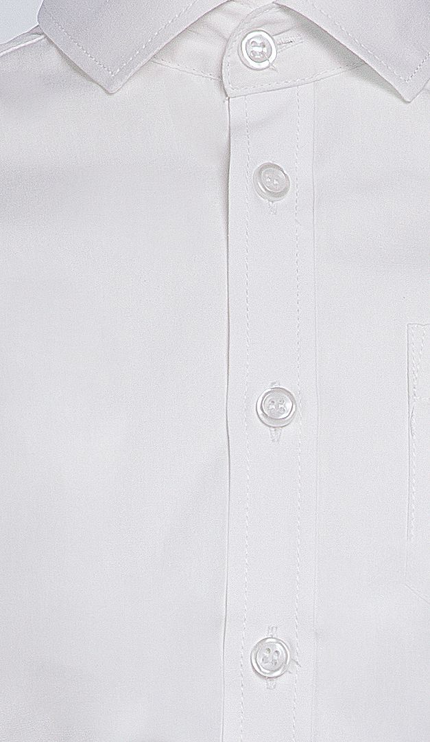 Стильна сорочка, класичного прямого крою — це ідеальне доповнення до гардеробу сучасного школяра. Сорочка виконана з натуральної якісної тканини, поличка виробу оформлена округлим вирізом горловини з класичним відкладним коміром і доповнена накладною функціональною кишенею. Модель застібається на зручну планку-застібку на ґудзиках, розташовану по центру передньої полички. Короткі рукава оформлені по низу манжетами. Низ сорочки плавної напівкруглої форми.
